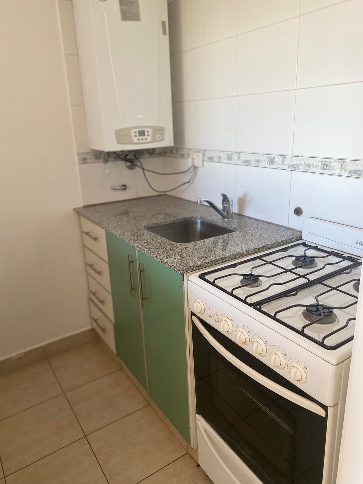 Departamento de UN dormitorio, living comedor, cocina, baño y cochera.